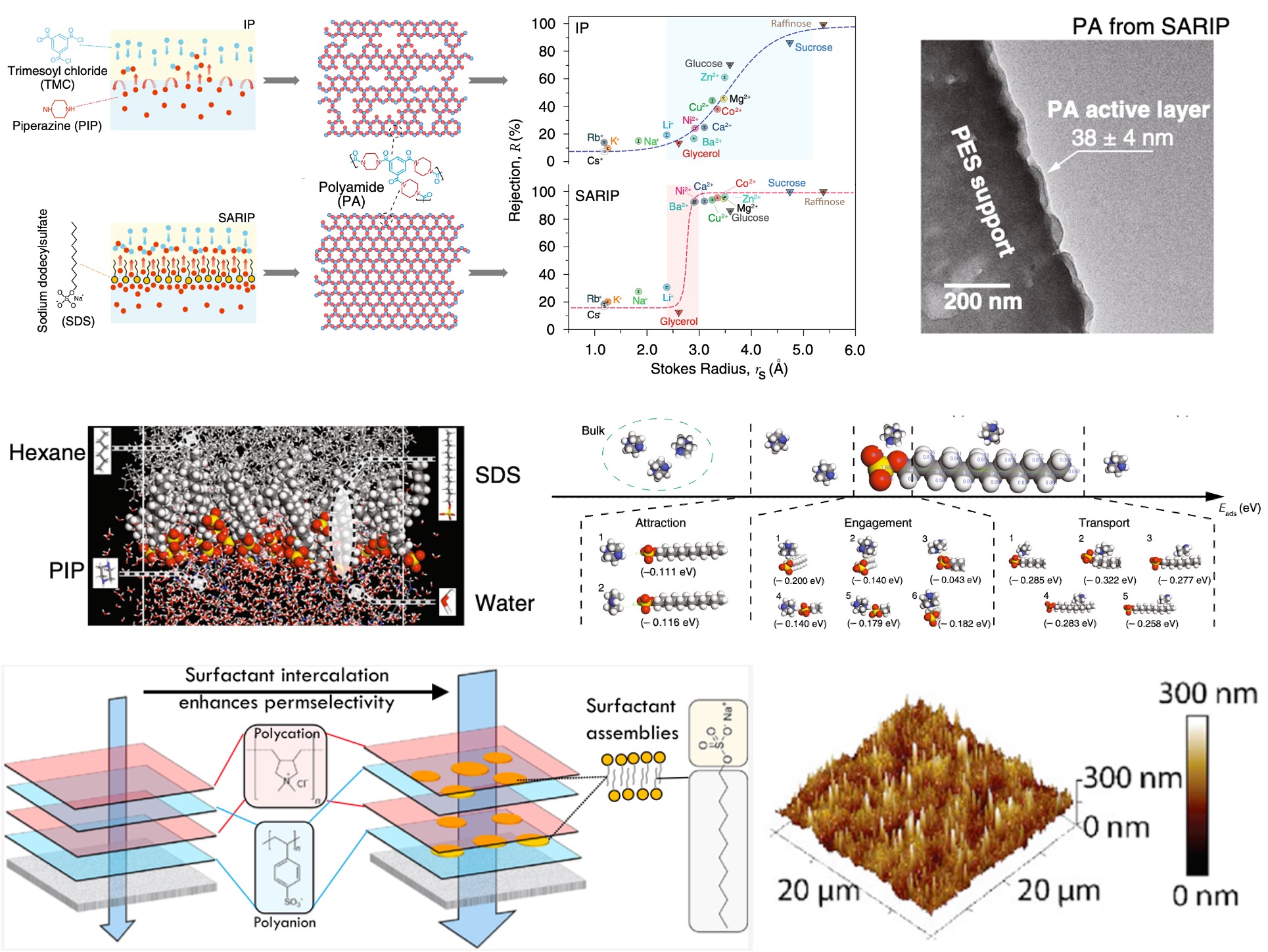1. Engineering functional membrane materials and advancing mechanistic understanding of transport phenomena.